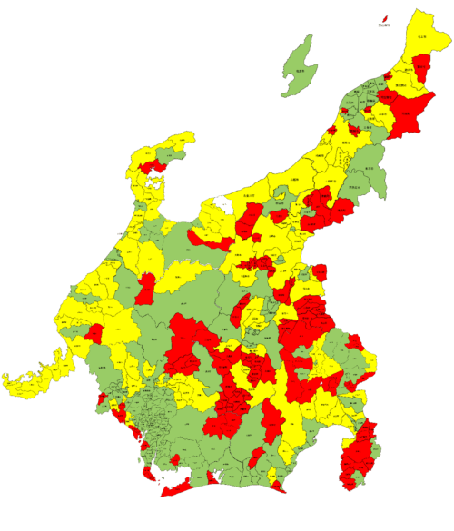 | △ | 南砺市 | 旧:井波町の全区域 旧:福野町の全区域 | 左記以外 |